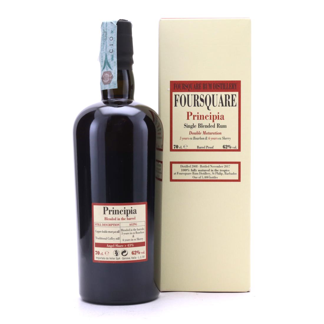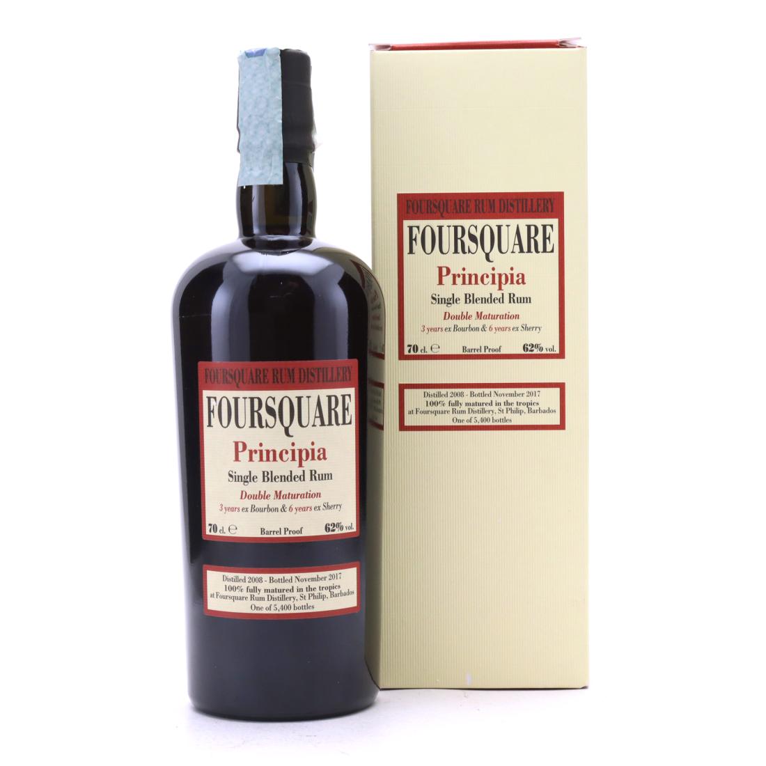 Principia is part of the Foursquare "black bottle" collaboration with Italian distributor, Velier. Distilled in 2008, it was 100% tropically matured in ex-bourbon casks for three years and ex-sherry casks for a further six.