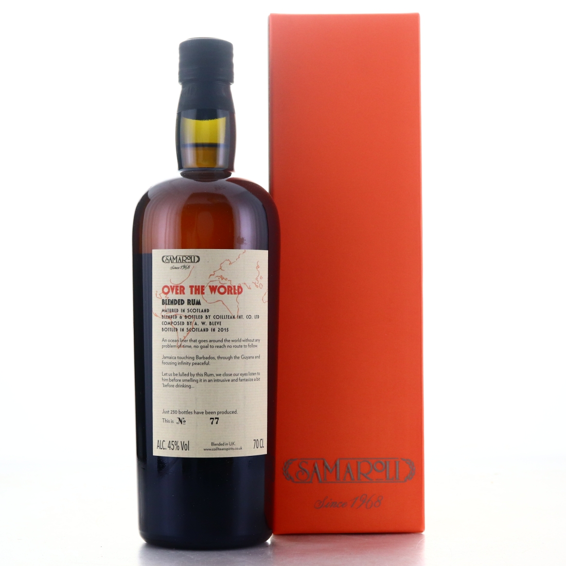 Over the World is the flagship blended rum of the Samaroli company, and has been for a number of years. Released annually and always incredibly sought after, it is produced using rum taken from every conceivable corner of the globe. This is the second edition, released in 2016. Master blender, Antonio Bleve, took rum from each of the other single casks in that year's catalogue, including some well-regarded releases from Hampden, Uitvlugt and South Pacific.
