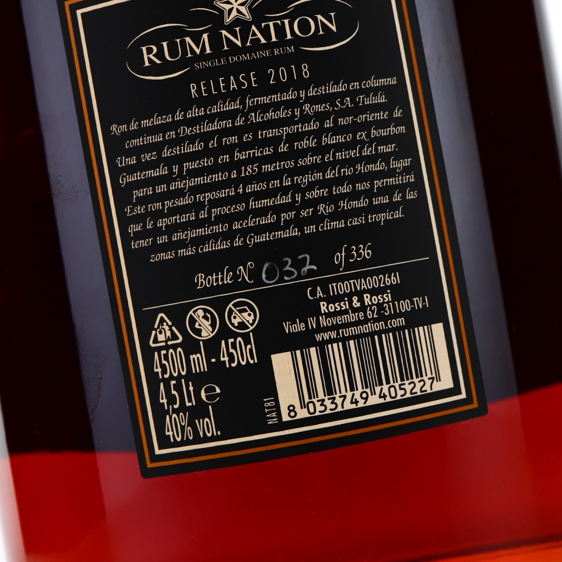This titanic bottle was distilled in Tulula, Guatemala at the Destiladora de Alcoholes y Rones SA (DARSA) facility which also produces the raw spirit that makes up some other very well known brands. The spirit was then aged 4 years in white oak ex-bourbon barrels and bottled in 2018.
